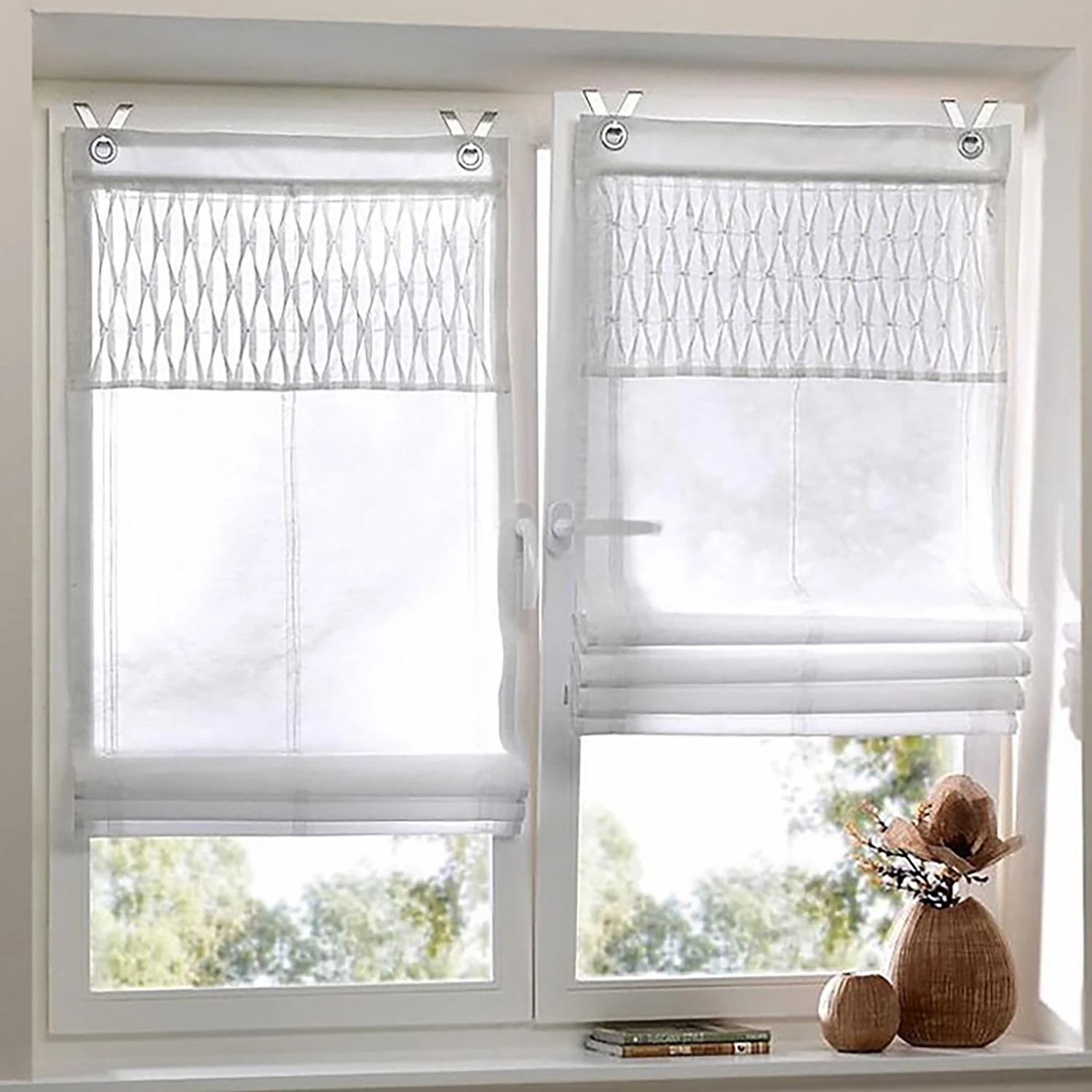 - Contenu de la livraison : 1 store bateau avec anneaux de fenêtre décoratifs et matériel de montage