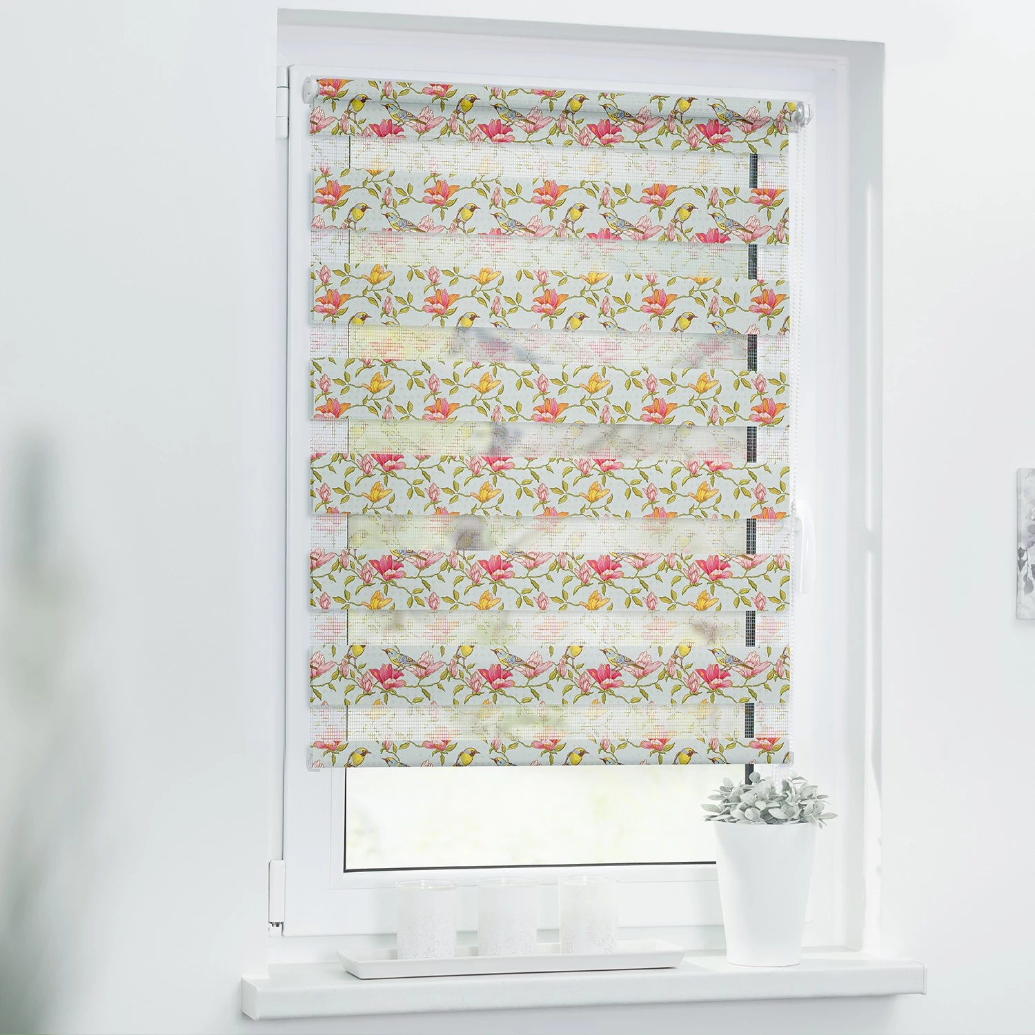 - Contenu de la livraison : Store enrouleur bicolore, instructions de montage, fixations et accessoires pour un montage au plafond et au mur