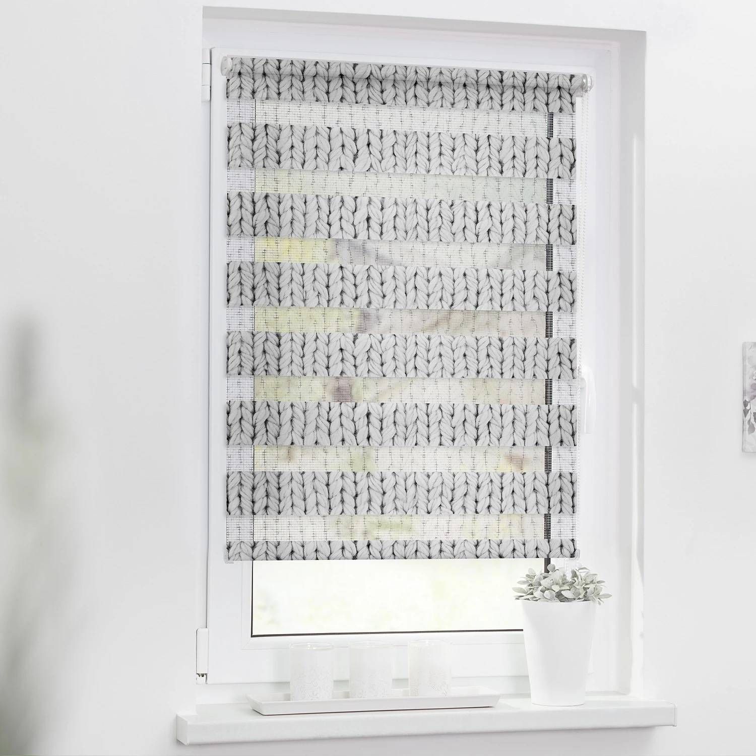 - Contenu de la livraison : Store enrouleur double, instructions de montage, supports pour fixation sans perçage et accessoires pour un montage au mur ou au plafond